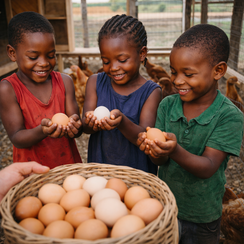 Der Hühnerstall schenkt einem Kinderheim eine verlässliche Versorgung mit Eiern. Etwas so Einfaches wird zu einem täglichen Zeichen von Fürsorge und Stabilität für die Kinder dort.